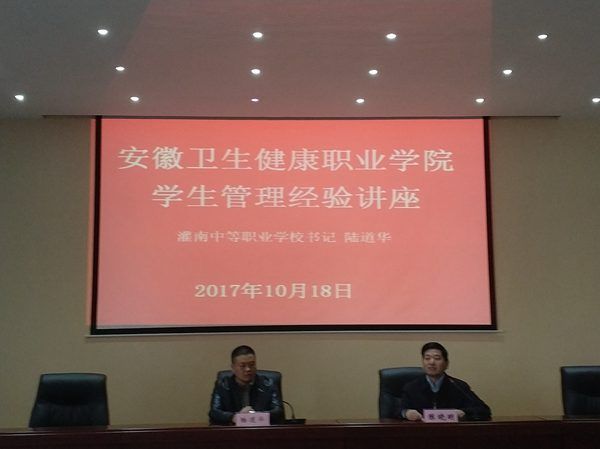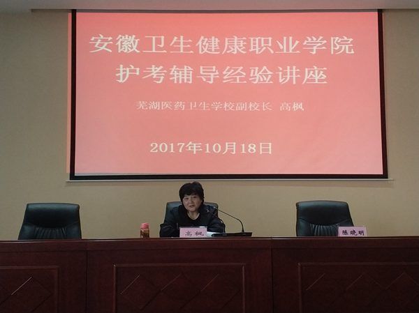 2017年10月18日下午,学院在图书馆五楼学术报告厅举办了两场学术讲座。芜湖医药卫生学校副校长高枫和江苏灌南卫校书记陆道华应邀来我院分别就护考辅导和学生管理工作分享了经验和心得。讲座由陈晓明院长主持。学院部分教师和全体辅导员、班主任以及学生管理部门工作人员参加学术讲座。