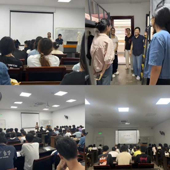 院校双方共同深入学生宿舍,一对一慰问学生,细致询问行李安置、住宿适应情况,针对学生提出的生活设施使用、周边生活配套等问题,双方现场协商解决方案,确保学生生活需求得到及时响应。当晚,为进一步强化学生安全意识与纪律观念,医疗卫生技术系副主任联合医院教学管理负责人共同出席班会,重点强调了人身安全、财产管理、交通出行等安全细则,引导学生遵守教学点学习及生活纪律,并就后续实践课程安排与学生进行沟通,引导学生快速适应双主体培养模式。